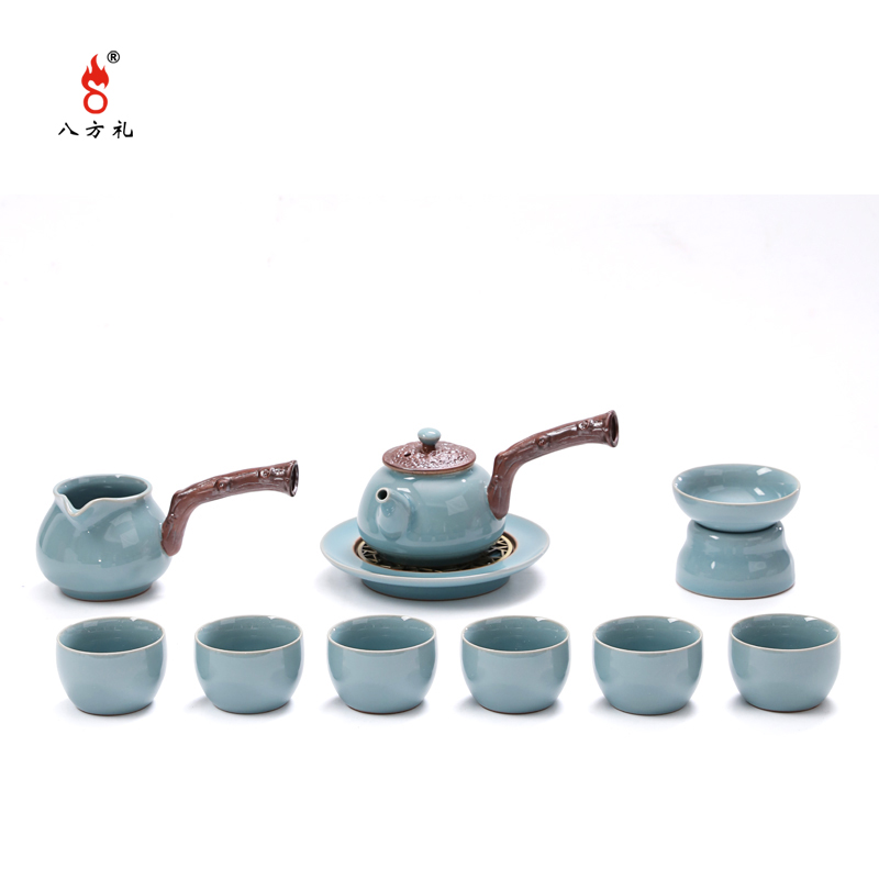 八方礼官窑11入茶具高档礼盒装(西藏,内蒙,新疆,宁夏,青海不发货) 青色
