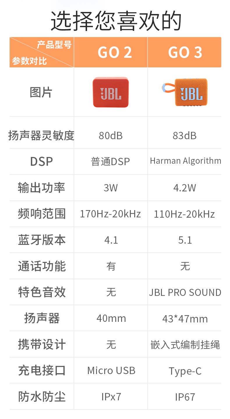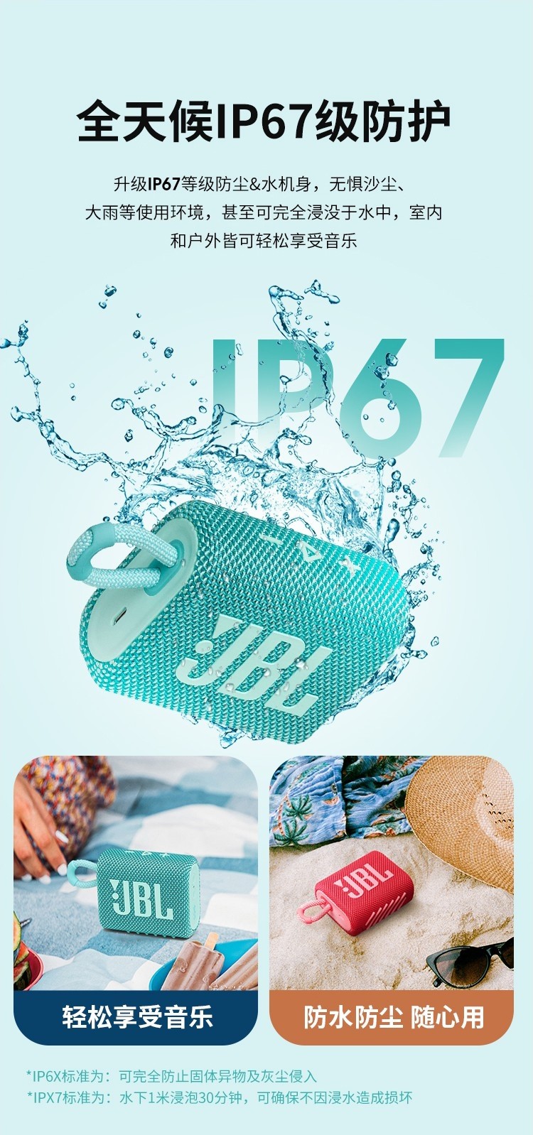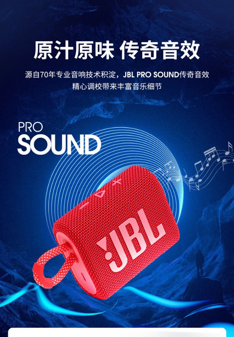 商品名称:JBL GO3 音乐金砖三代 便携式蓝牙音箱 低音炮 户外音箱 迷你小音响 防水设计 颜色随机发