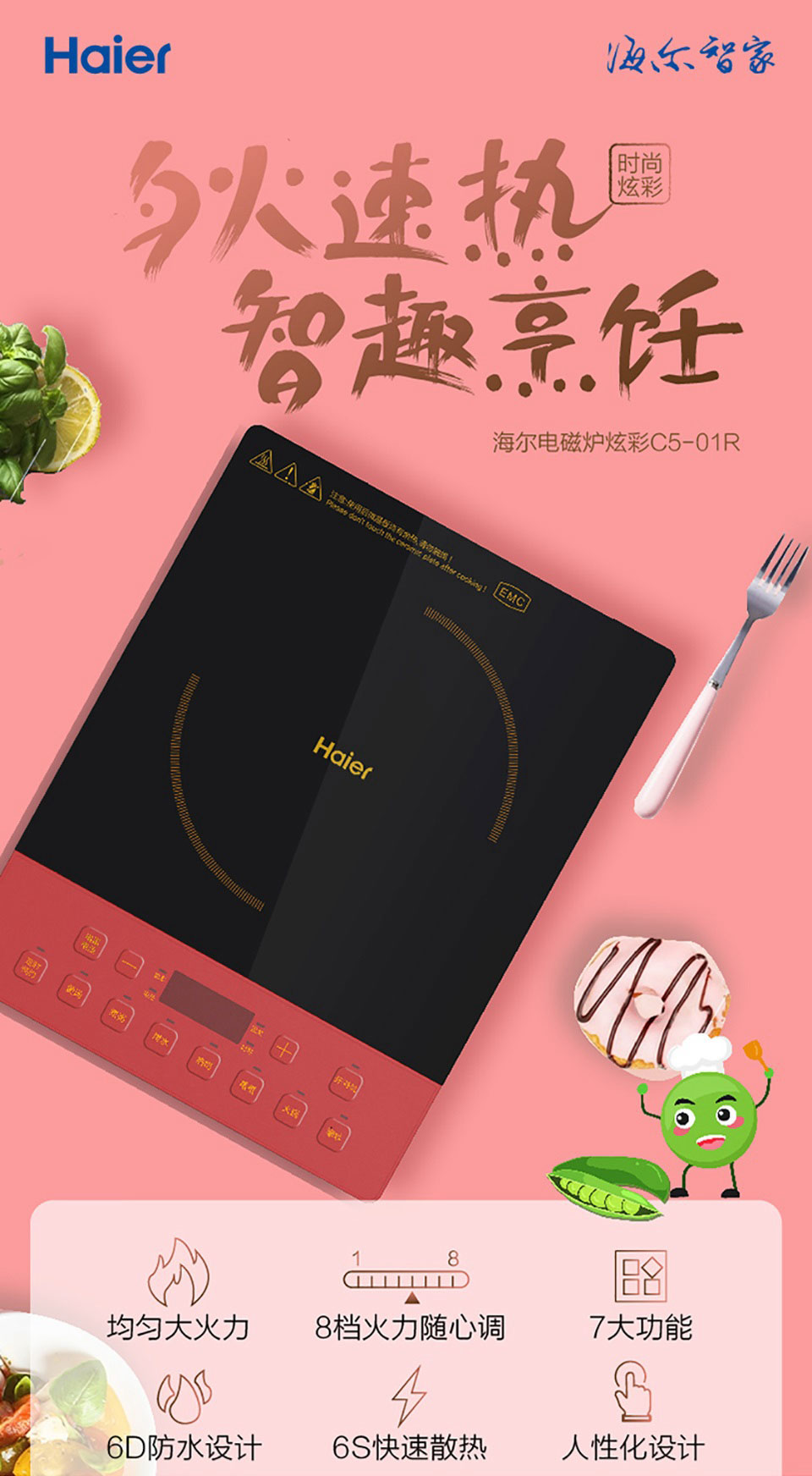 商品名称:海尔(Haier)C5-02G 电磁炉 炫彩 家用大功率 绿色