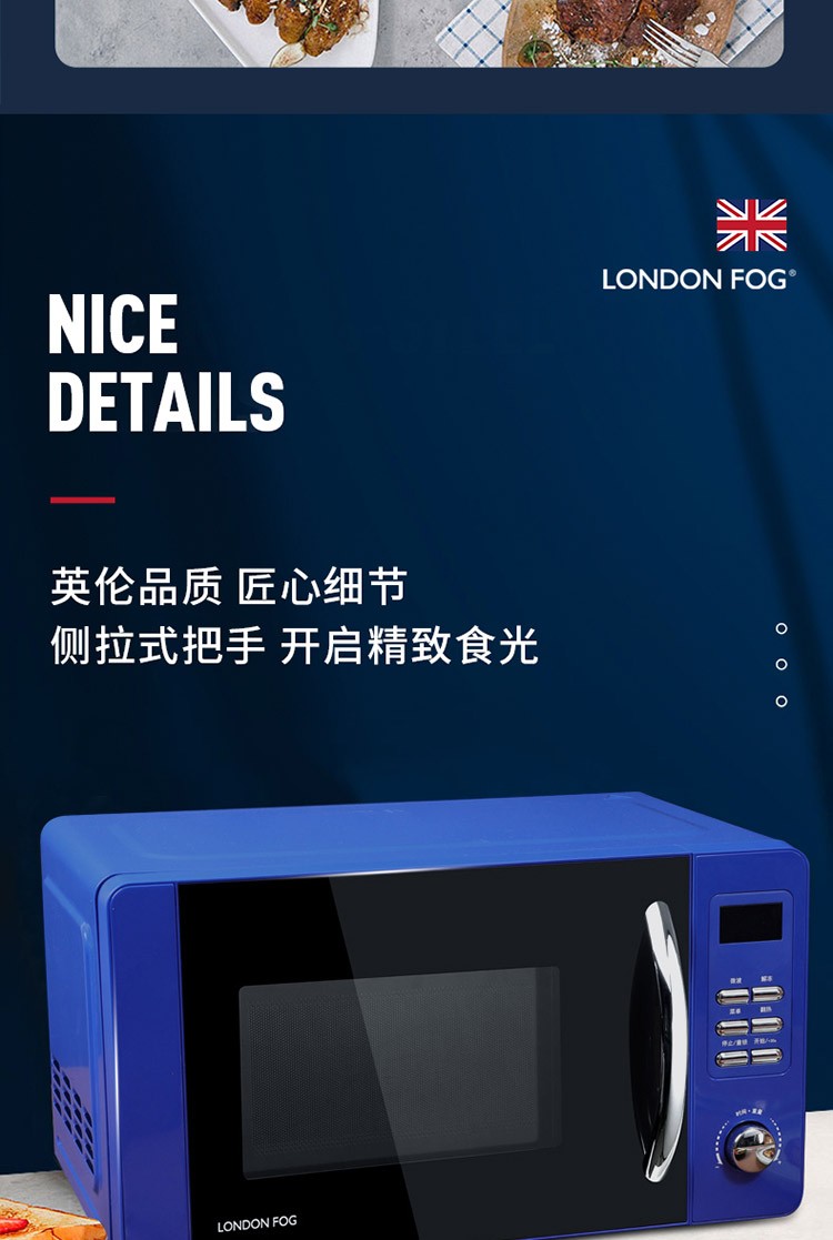 伦敦雾(London Fog)布狄卡Boudica 微波炉20L转盘式侧拉门可预约复古LKA82蓝色
