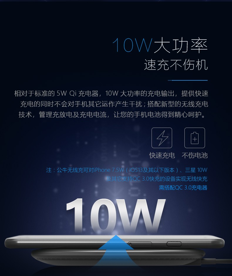 商品名称:公牛(BULL)快速充电USB充电器/USB手机电源适配器 GNV-WA210U 二代平板式无线充Mini版 6970935331200