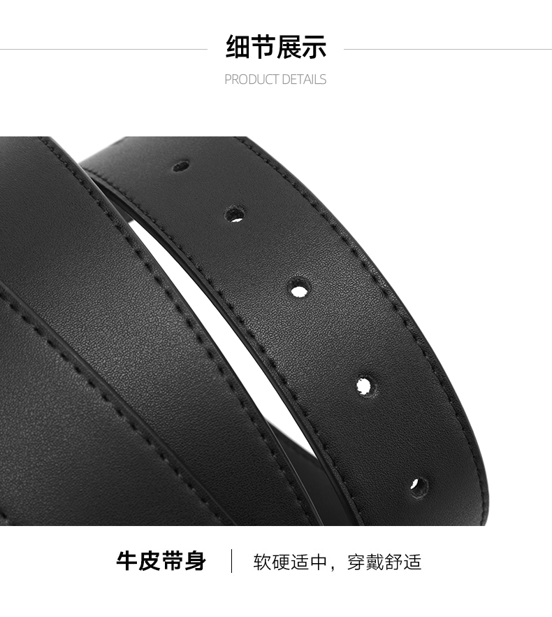 商品名称:恒源祥新款针扣皮带男士商务休闲裤腰带卡扣腰带礼盒装 银色卡扣皮带 HYX0574