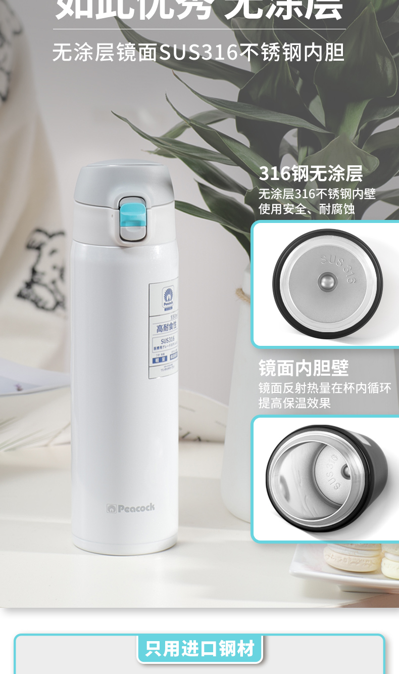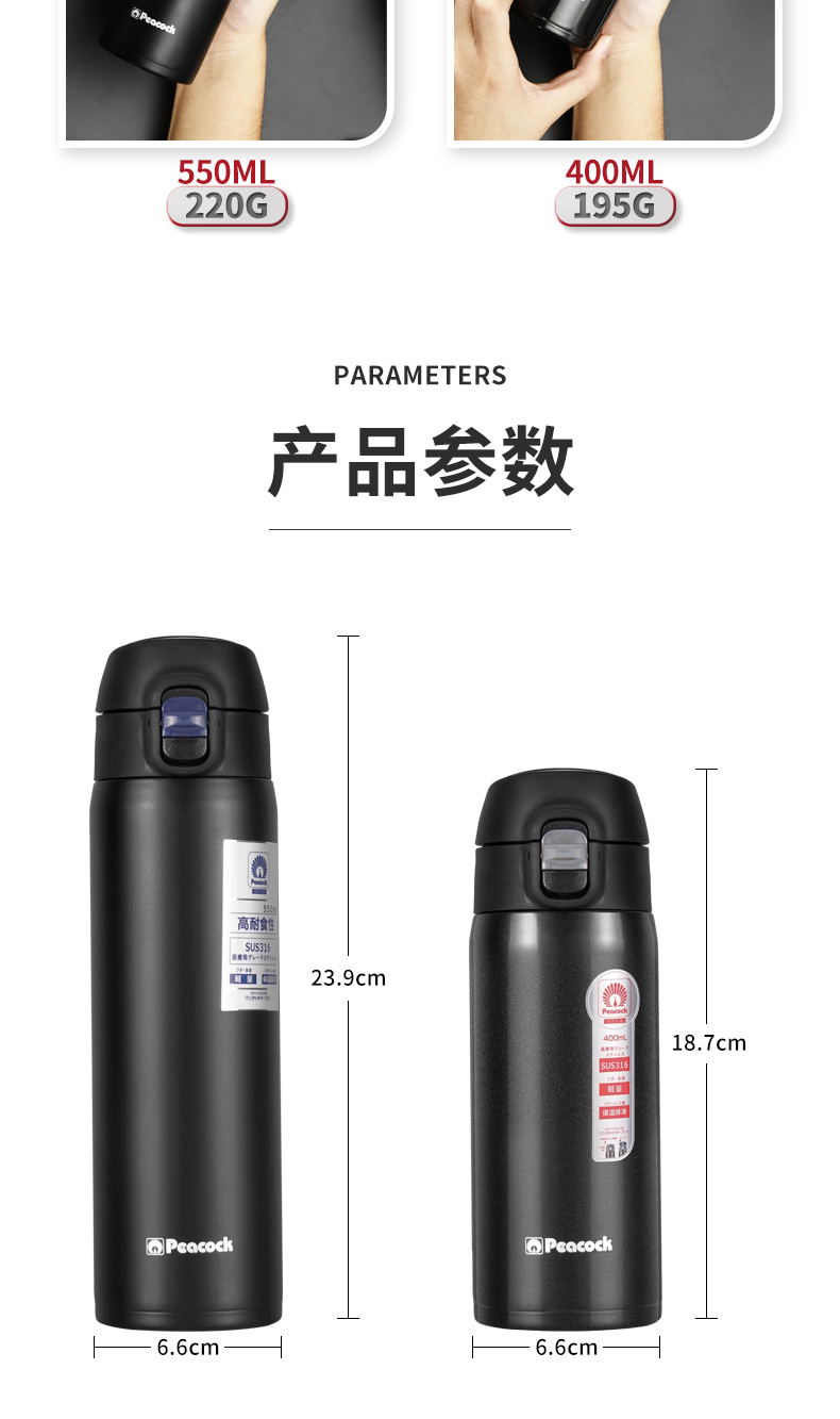 日本孔雀保温杯男316不锈钢DCY-55(B)