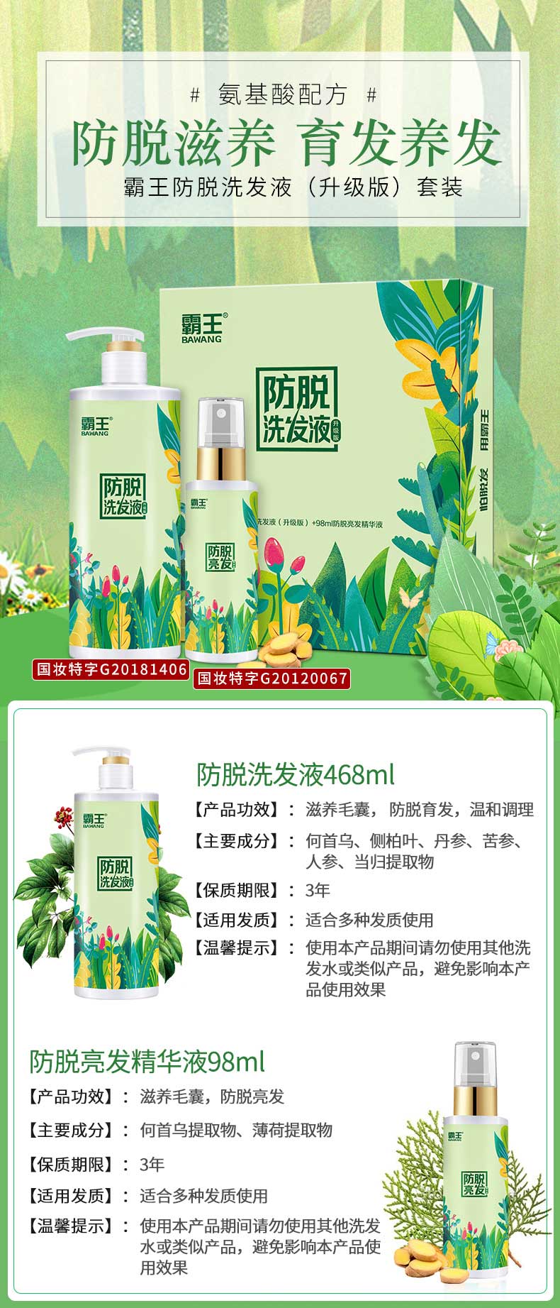 商品名称:霸王防脱洗发液(升级版)+98ml防脱亮发精华液468ml 10101021918