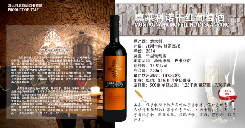商品名称:提尼蒙特酒庄 莫来利诺干红葡萄酒 DOCG 750ml*6瓶 新疆西藏不发货