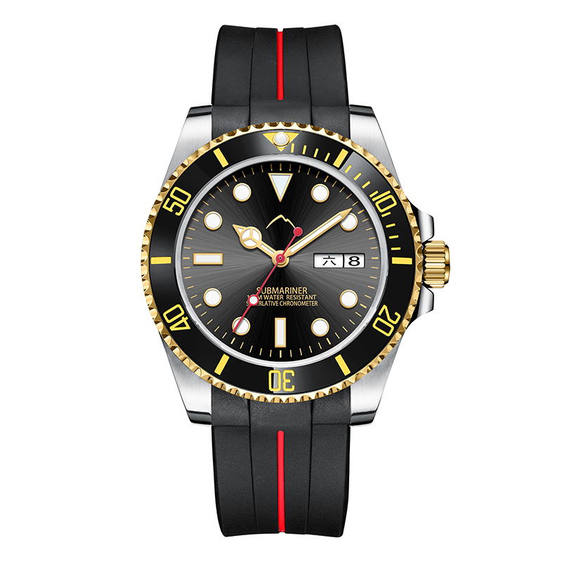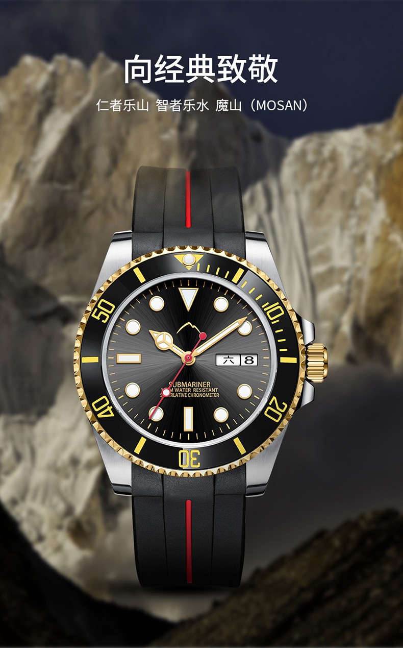 商品名称:魔山表(MOSAN)正品 水鬼石英防水夜光 男表 标准版MS009771 黑金圈黑表壳