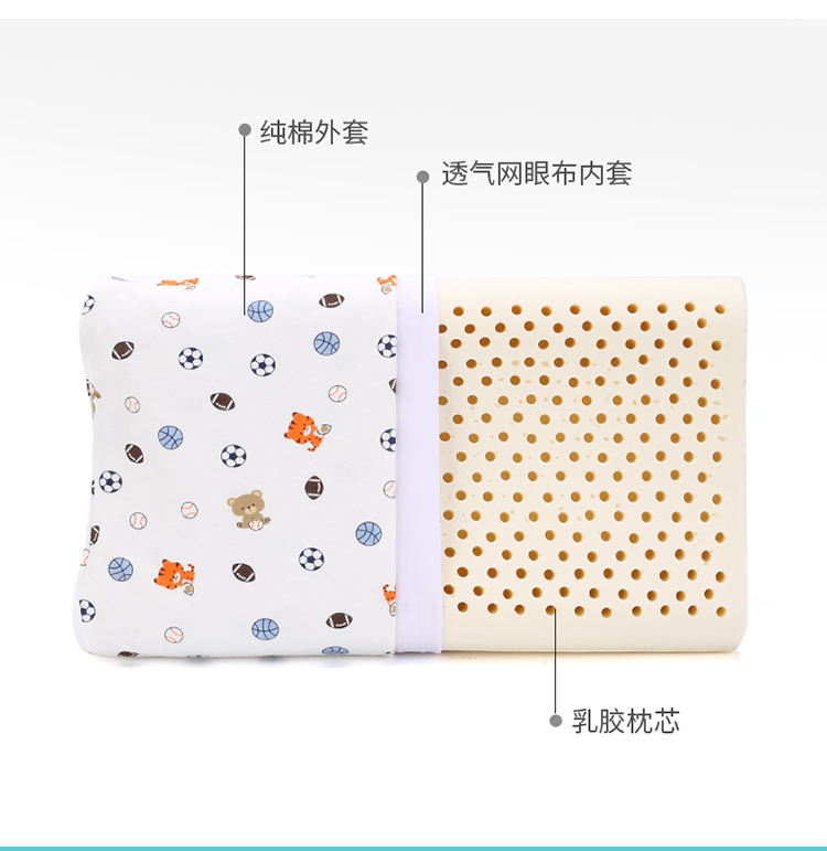 拜雅得儿童乳胶枕头泰国原装进口小学生3-6-10岁小孩天然纯橡胶枕男女儿童宝宝贴合颈椎枕芯44*27*7 小猪佩奇