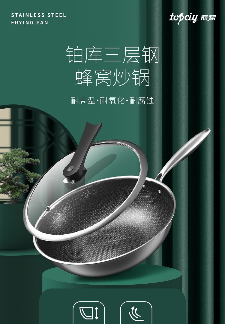 商品名称:拓希 TX-CC108 铂库三层钢蜂窝炒锅 32CM(新疆、西藏不发)