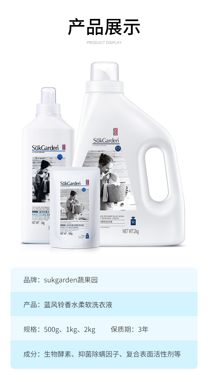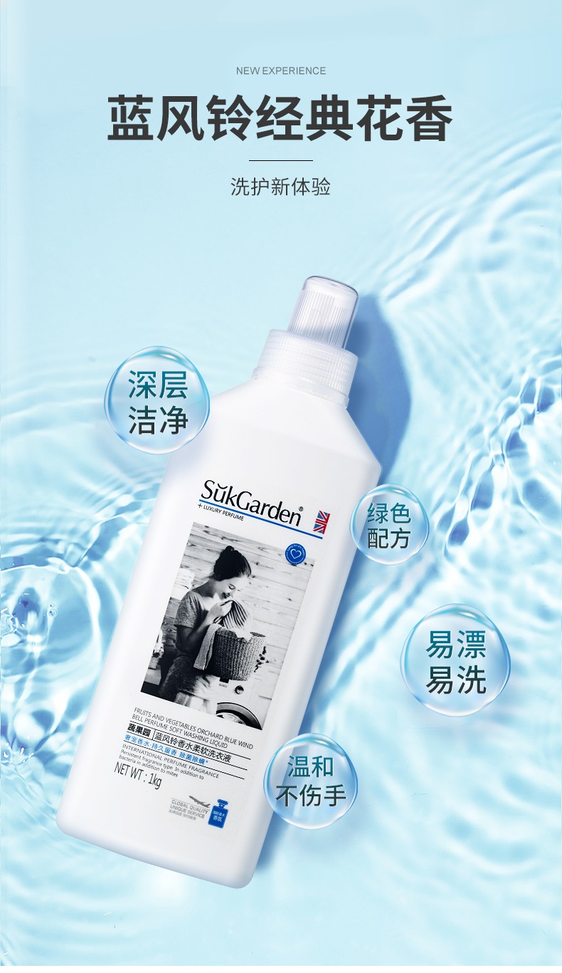 SukGarden蔬果园 蓝风铃香水柔软洗衣液 持久留香型 1瓶*1kg(新疆,青海,内蒙,宁夏,甘肃,海南,西藏不发)
