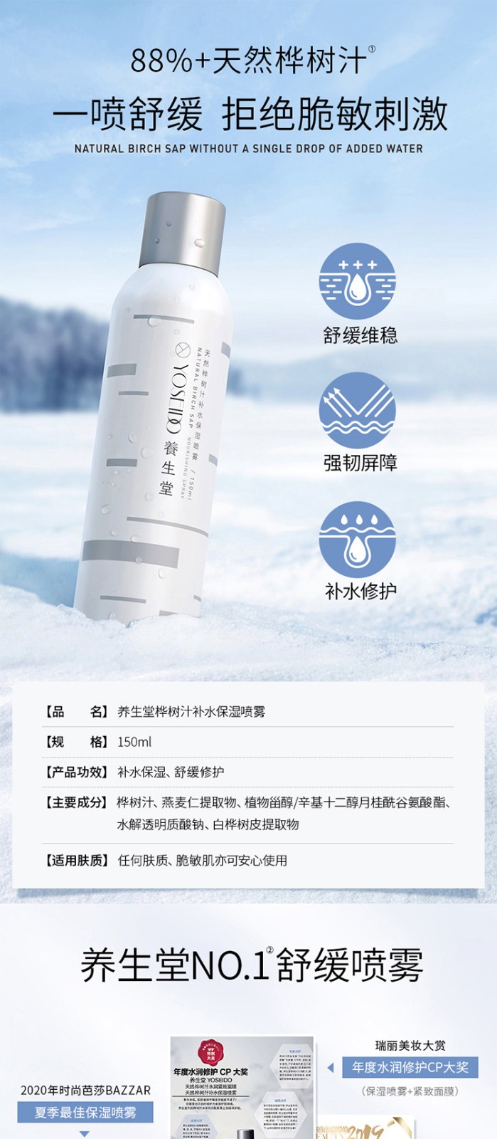 商品名称:YOSEIDO养生堂 天然桦树汁补水保湿喷雾 150ml