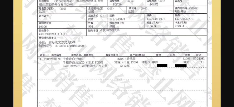 商品名称:S-千雅诗XO白兰地 700ml/瓶 单瓶装
