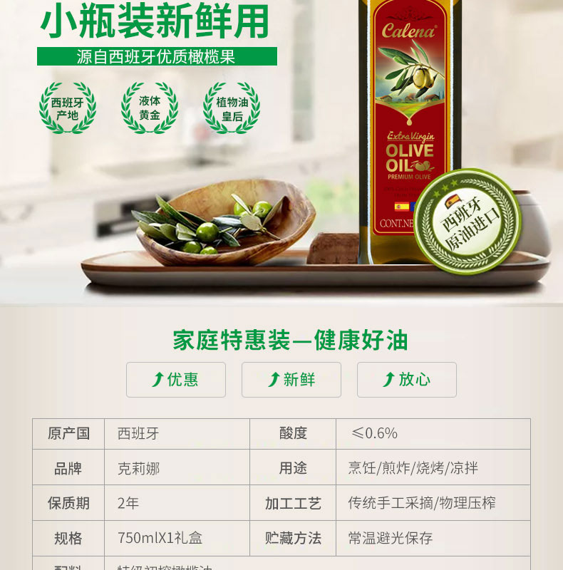 商品名称:克莉娜 特级初榨橄榄油(原油进口)750ml*1礼盒 新疆西藏不发货