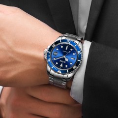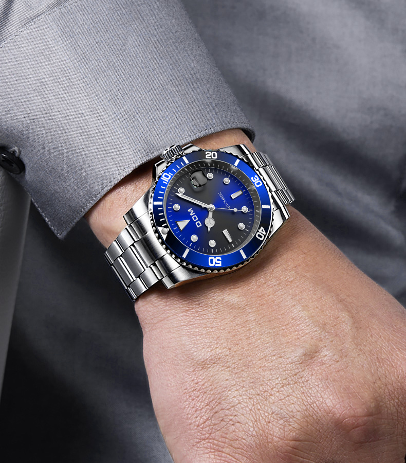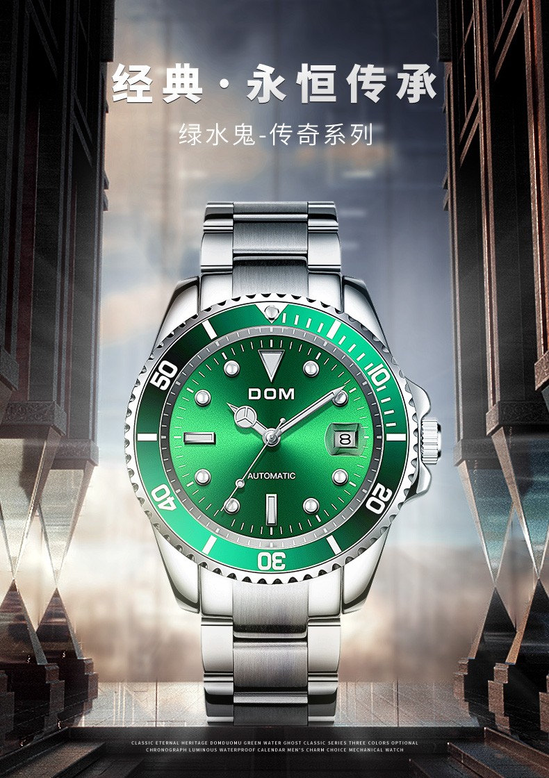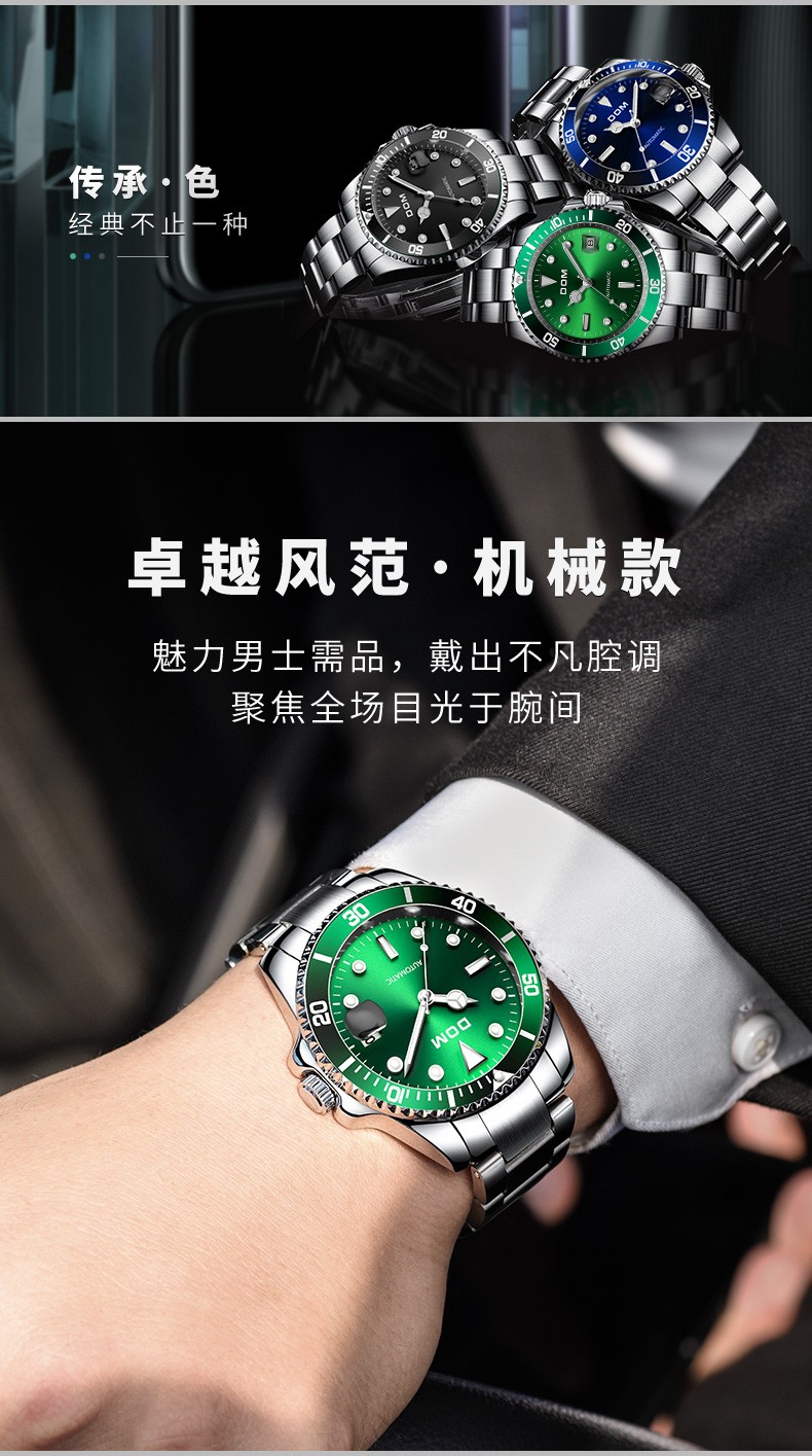 商品名称:多姆(DOM)全自动镂空商务机械男表 M-1310D-2M 运动夜光防水 蓝盘银钢带 新疆西藏不发货