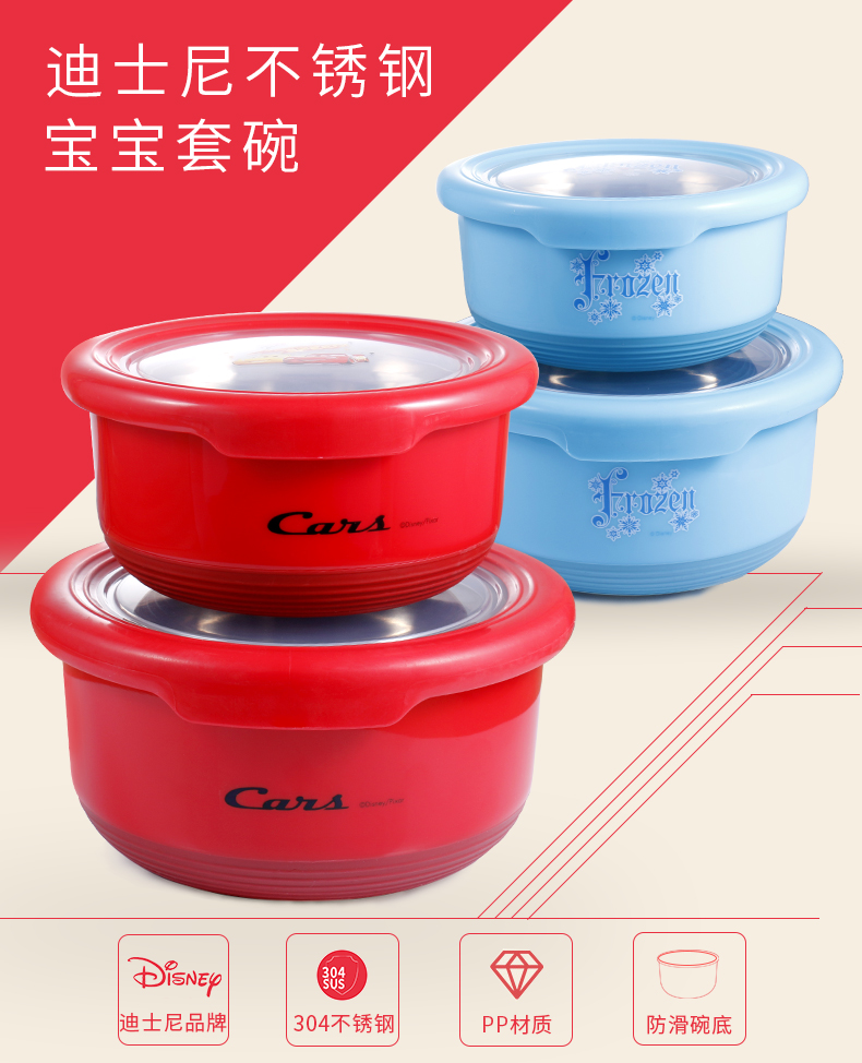 迪士尼儿童餐具大套装 宝宝餐具碗叉勺水杯套装不锈钢 闪电麦昆冰雪奇缘系列