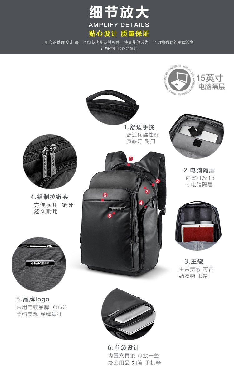 爱登堡(Edenbo)商务休闲双肩包F1722黑色