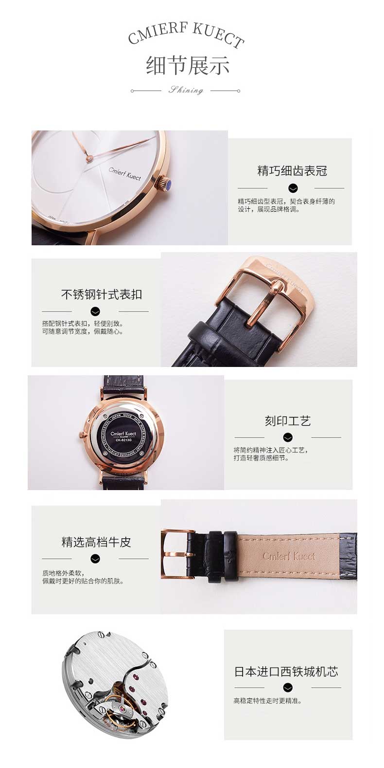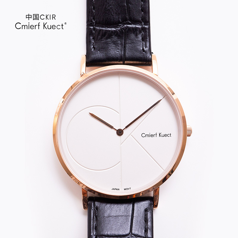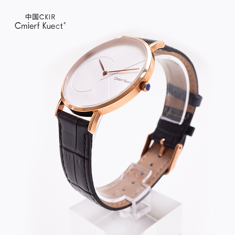 Cmierf Kuect(中国CKIR) 简约皮带石英男表 CKIR-G8213金色表壳 白色表盘 黑色表带)新疆西藏青海宁夏甘肃内蒙不发货