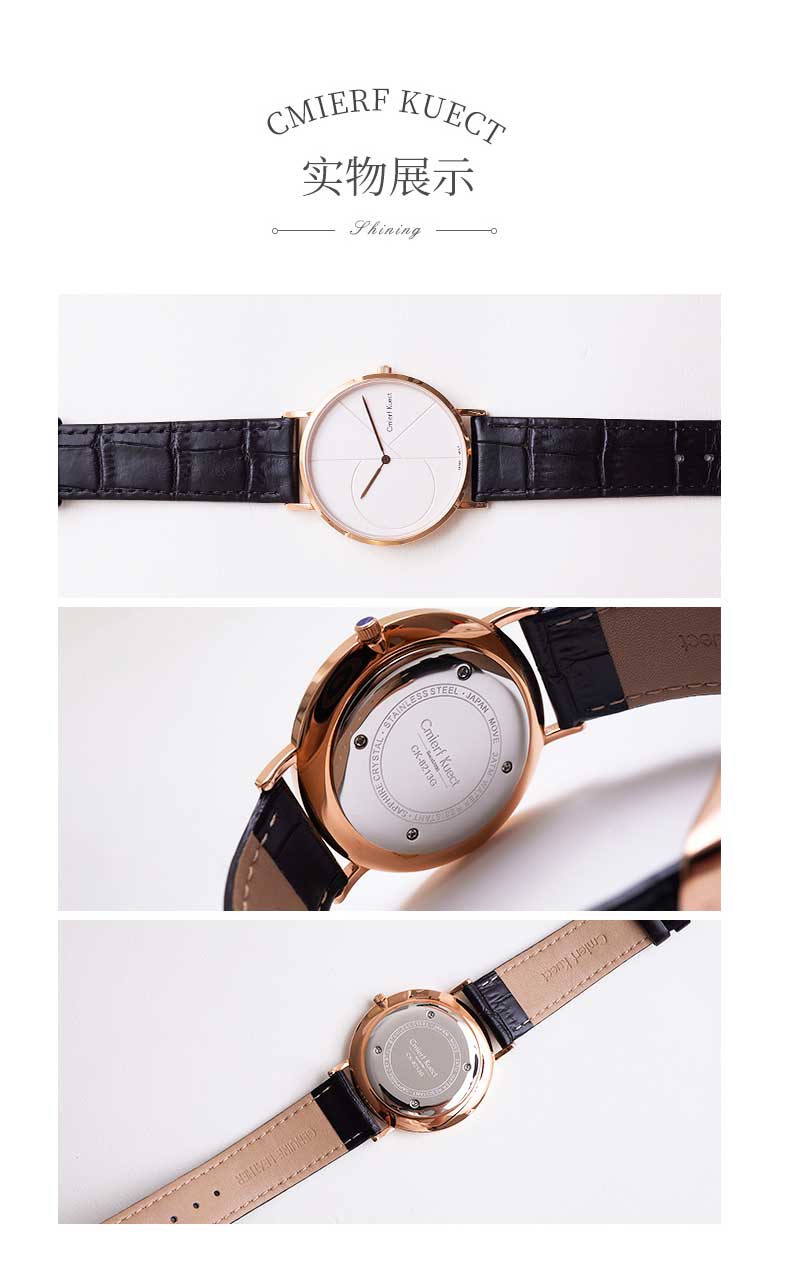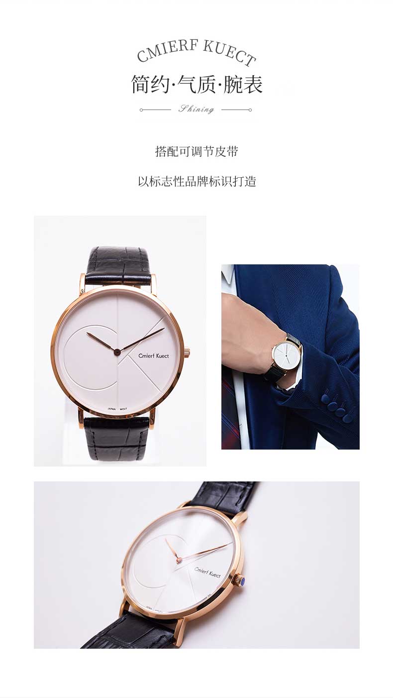 商品名称:Cmierf Kuect(中国CKIR) 简约皮带石英男表 CKIR-G8213金色表壳 白色表盘 黑色表带)新疆西藏青海宁夏甘肃内蒙不发货