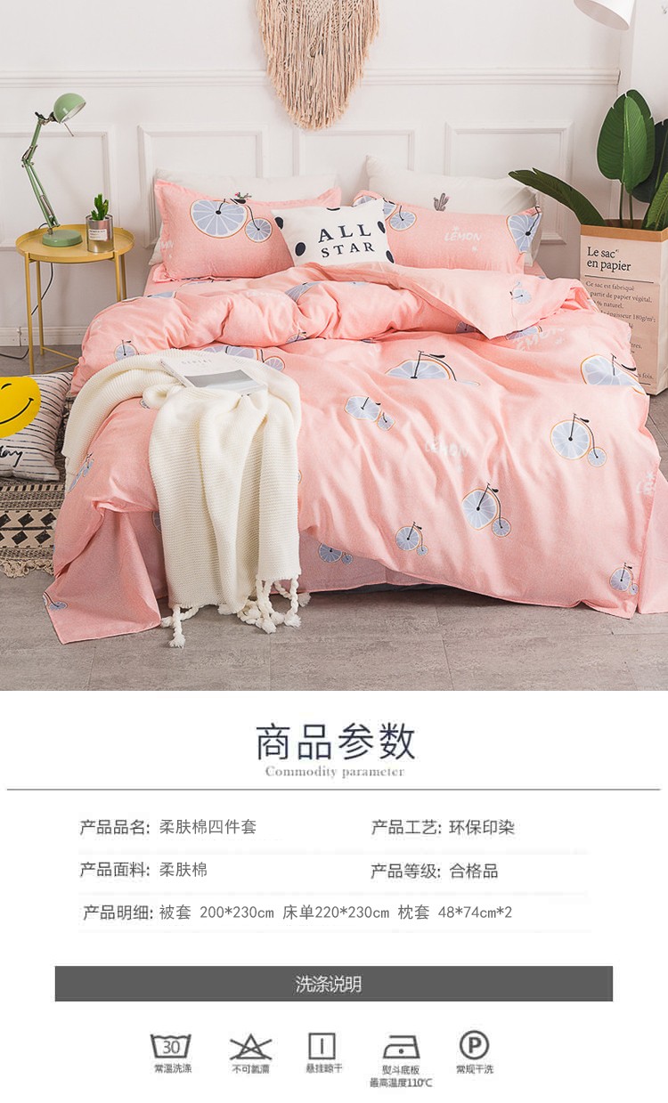 悠梦嘉居 YJ-1009 柔肤棉四件套(床单220x230cm)樱恋/旅程 二色可选下单备注颜色(内蒙、新疆、西藏、青海、宁夏、甘肃不发)