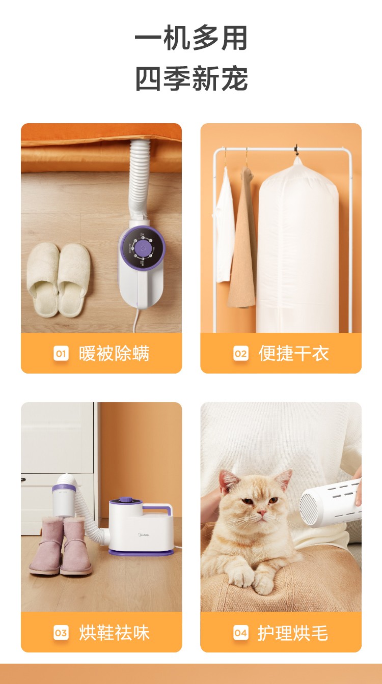 商品名称:美的 MXW-01 暖被干衣机 衣服被褥干燥烘鞋除螨除湿宠物吹毛便携 MXW-01新疆西藏快递费另算