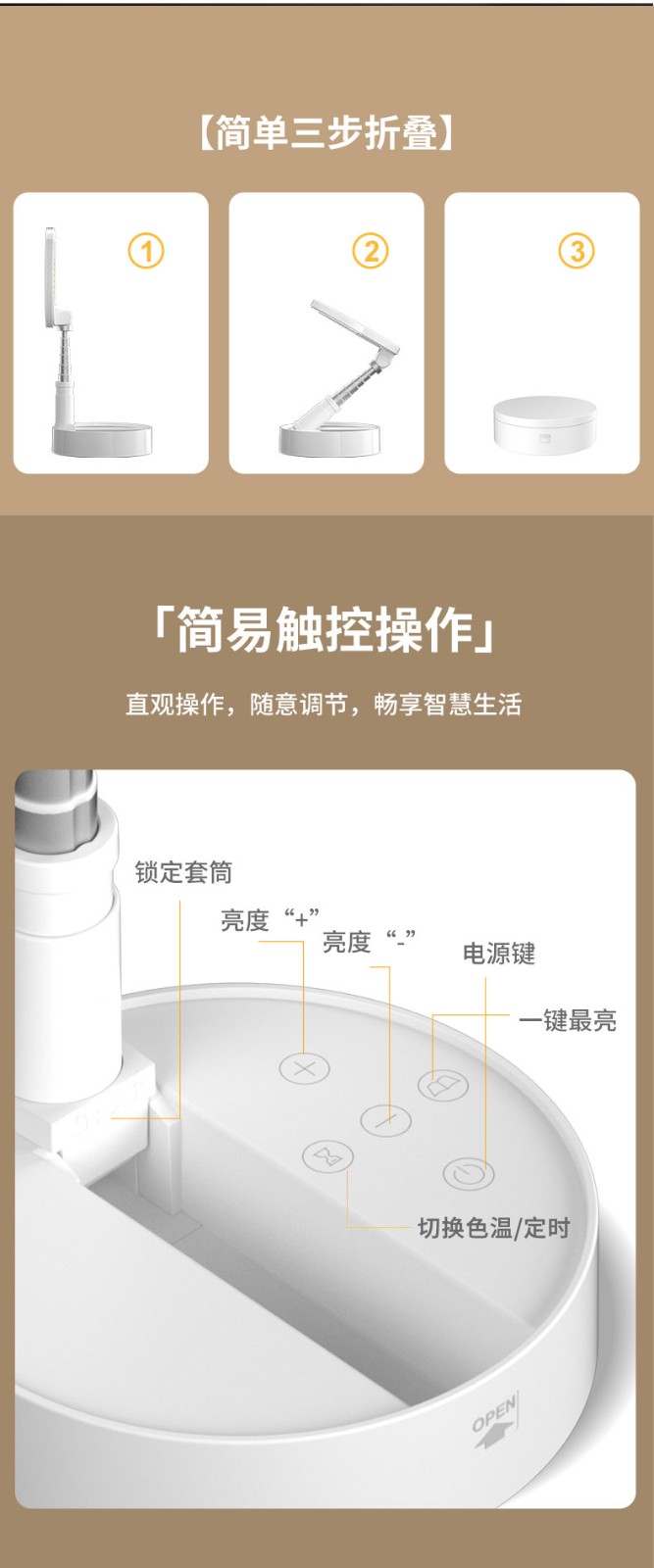 商品名称:沃品 折叠可伸缩式高LED护眼台灯 TD12 白色 新疆西藏不发货