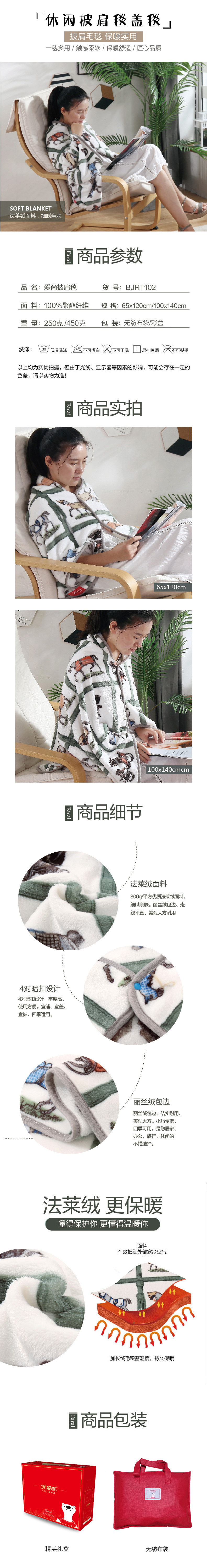 北极绒 爱尚披肩毯 BJRT102 100x140cm 450克(无纺布袋)新疆西藏海南黑龙江内蒙甘肃青海宁夏不发货