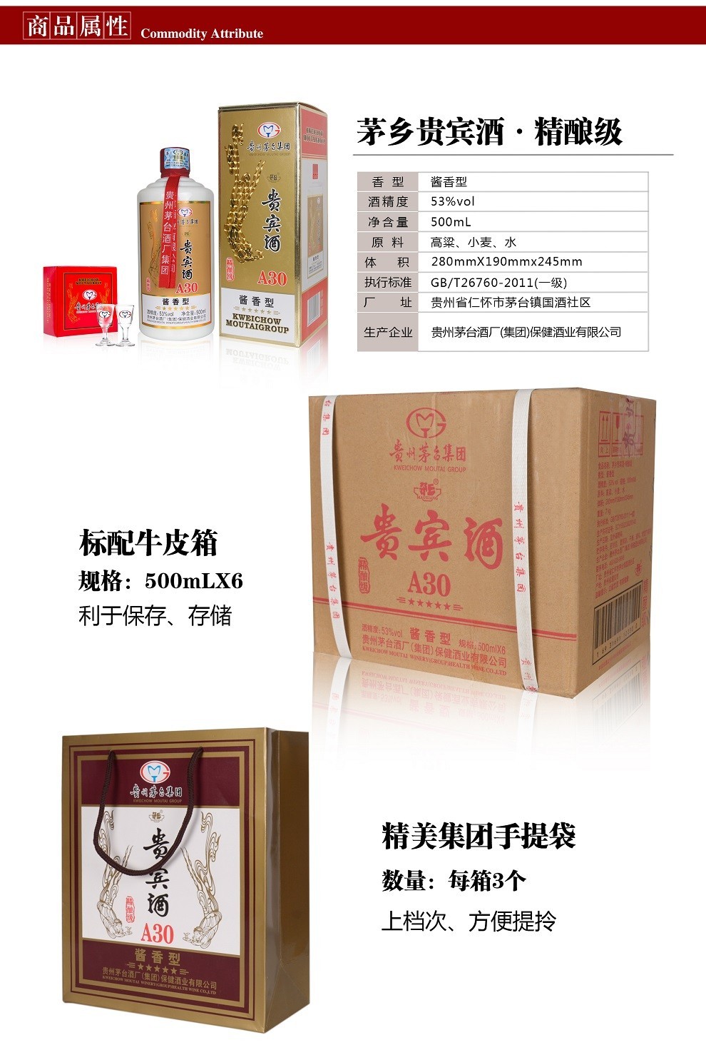 商品名称:贵州茅台集团 茅乡贵宾酒 A30精酿级 53度酱香型白酒 500ml*2瓶 (西藏新疆青海内蒙甘肃宁夏不发货)