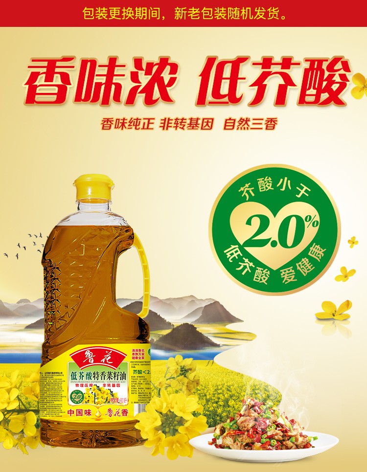 商品名称:鲁花 低芥酸特香菜籽油 900ml 物理压榨 非转基因 CP004484