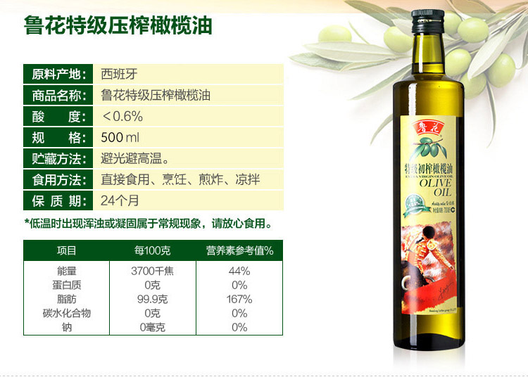 商品名称:鲁花特级初榨橄榄油 500ml CP003859