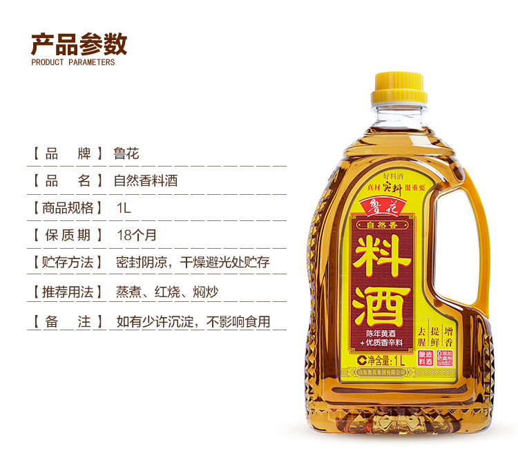 商品名称:鲁花 烹饪黄酒 自然香料酒1L*2瓶(去腥 提鲜 增香) CP005074