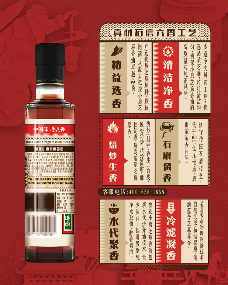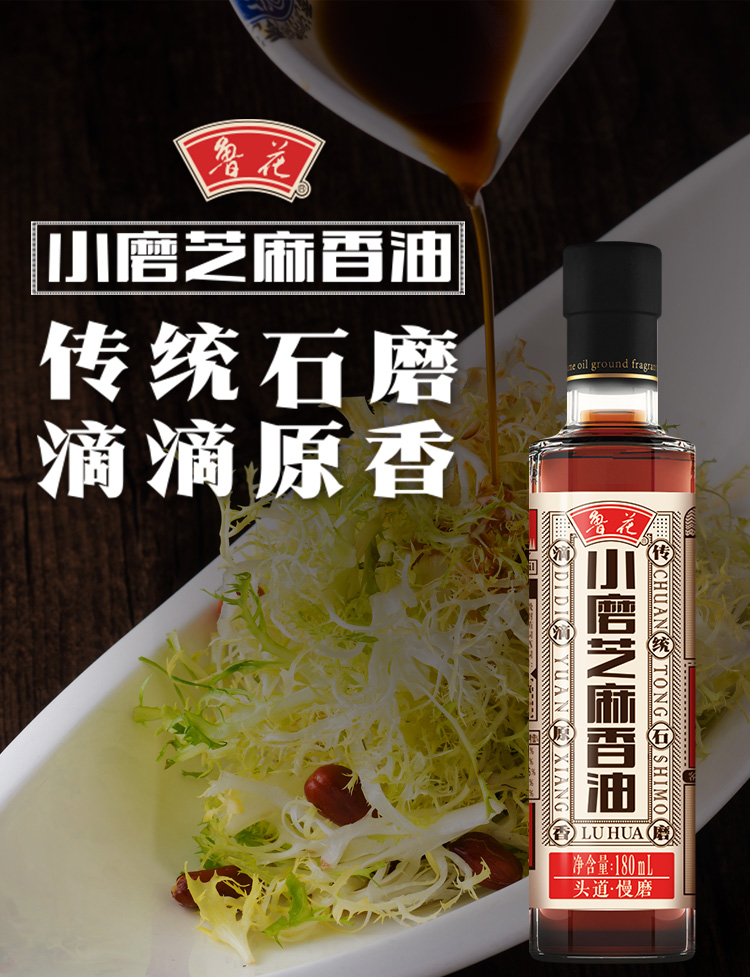 商品名称:鲁花 食用油 小磨香油180ml*4瓶 石磨研磨 水代精制 CP004420