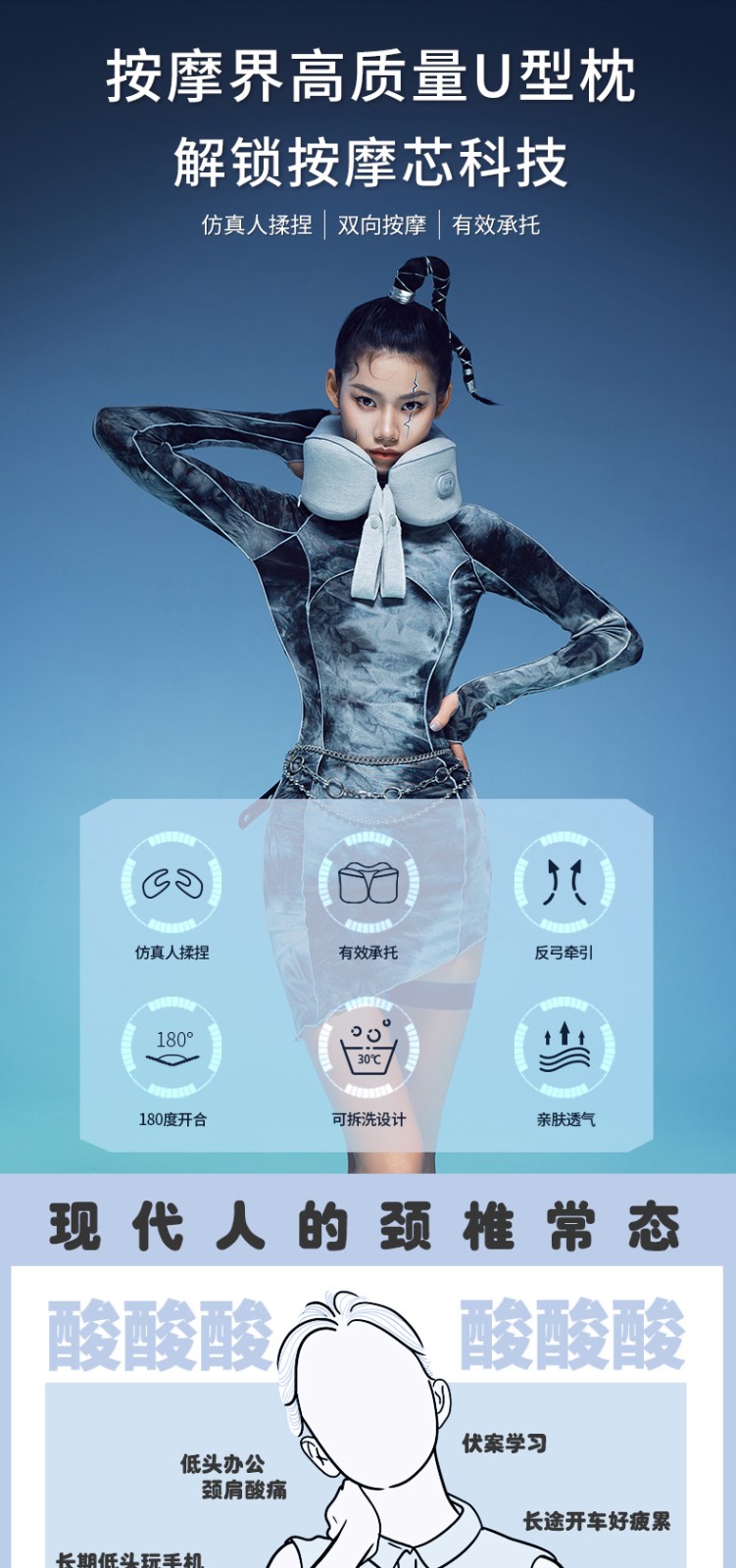商品名称:和正 U型多功能颈椎按摩器 HZ-U1 百搭灰/静谧蓝/牛油果/仙踪绿可选下单备注 海南新疆西藏青海不包邮