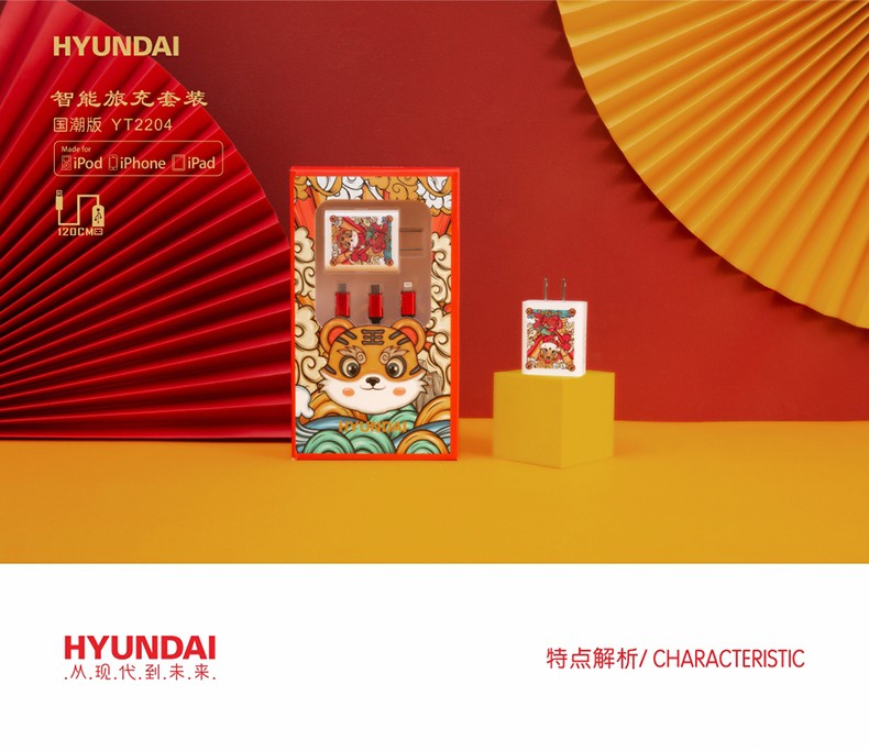 HYUNDAI现代 智能旅充套装 YT2204(适配器+三合一数据线套装) 新疆内蒙古宁夏西藏青海不包邮