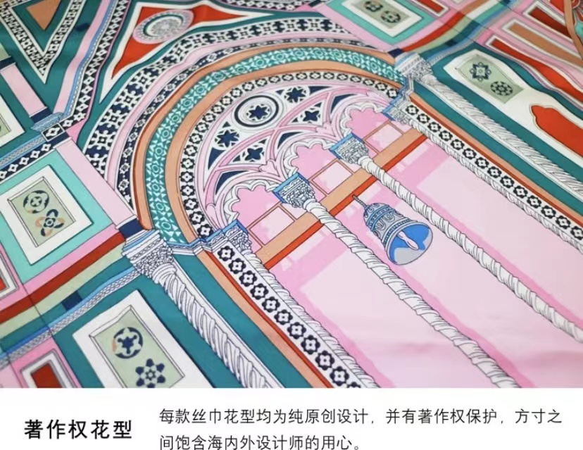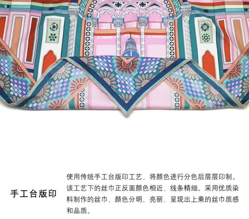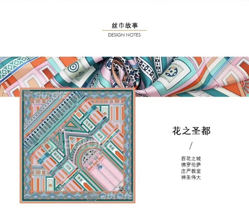 商品名称:奥罗拉100%桑蚕丝真丝斜纹绸66中方巾花之圣都Q2-006