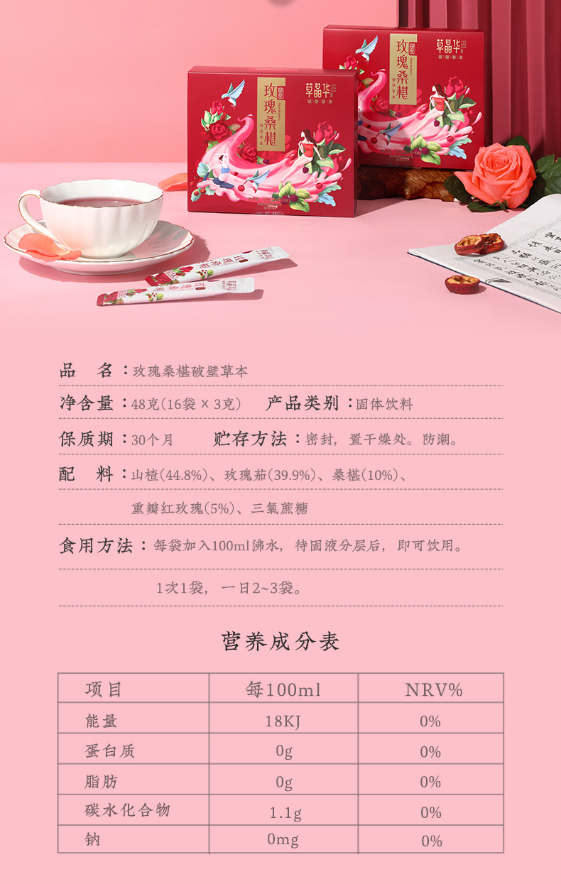 商品名称:草晶华破壁草本玫瑰桑椹山楂茶破壁草本玫瑰花茶女人茶48g/盒(新疆西藏运费另算)