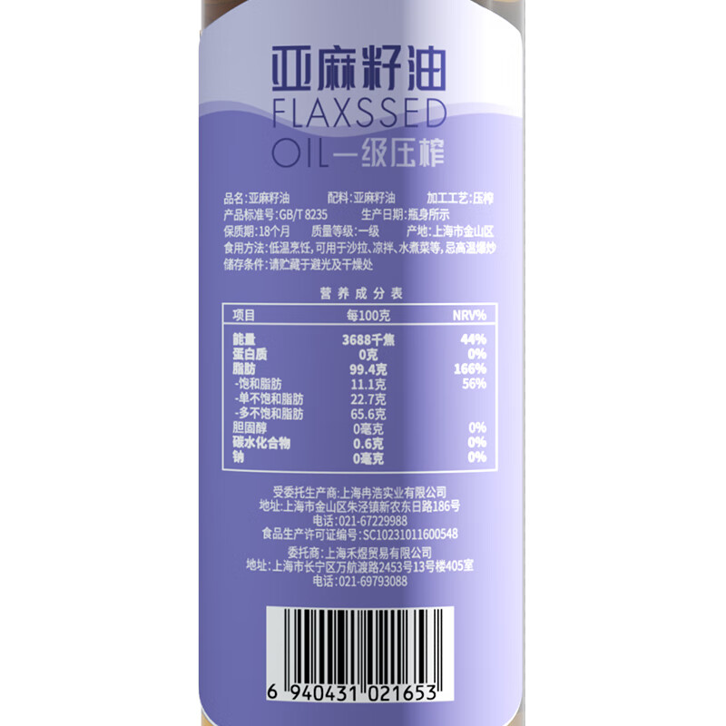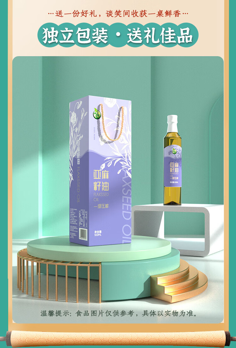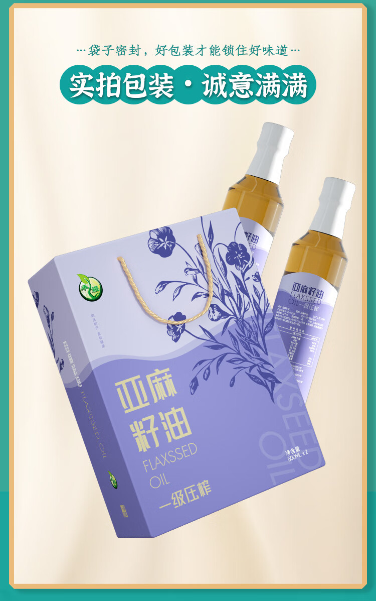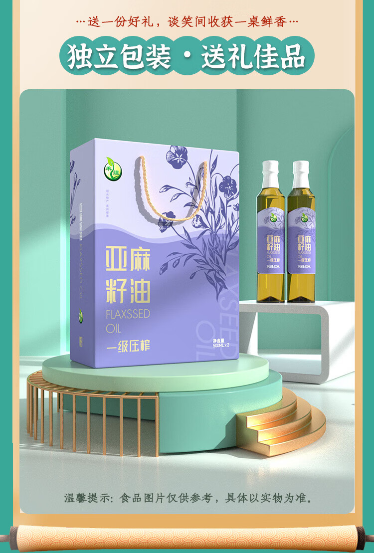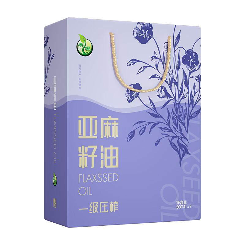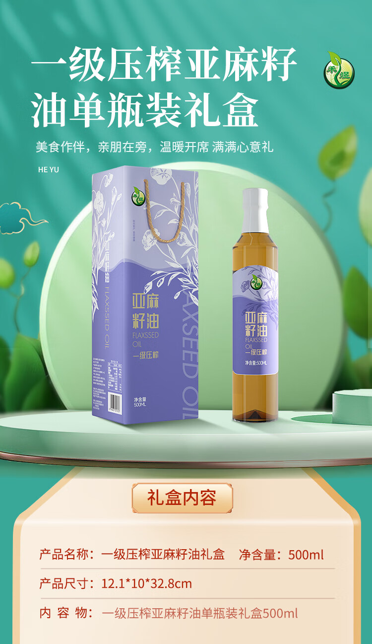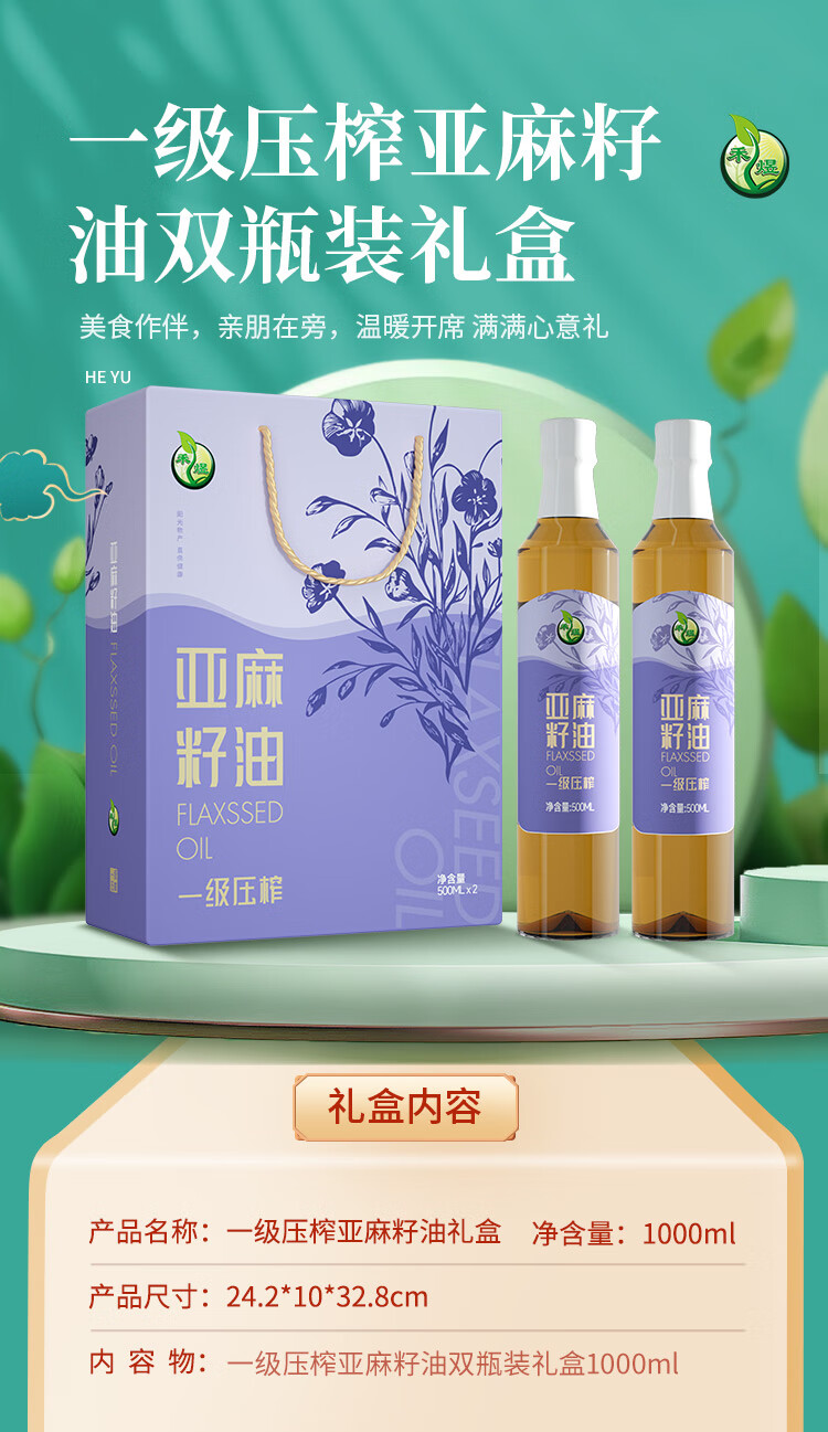 商品名称:禾煜 一级压榨亚麻籽油 500ml*2 礼盒 6940431021660