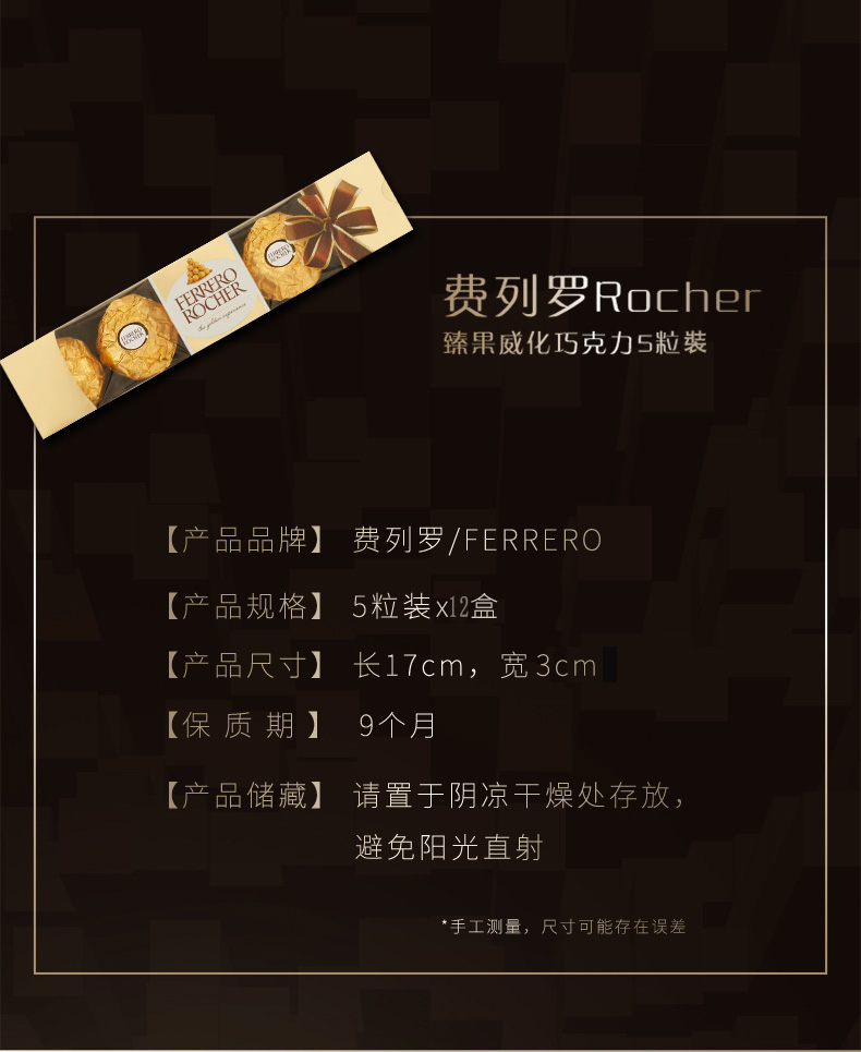 商品名称:费列罗榛果威化巧克力5粒装*12条 ROC T5