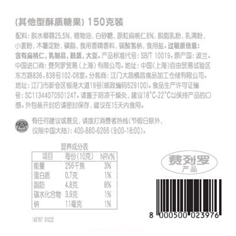 商品名称:拉斐尔脆雪柔椰蓉扁桃仁糖果酥球15粒装*2盒