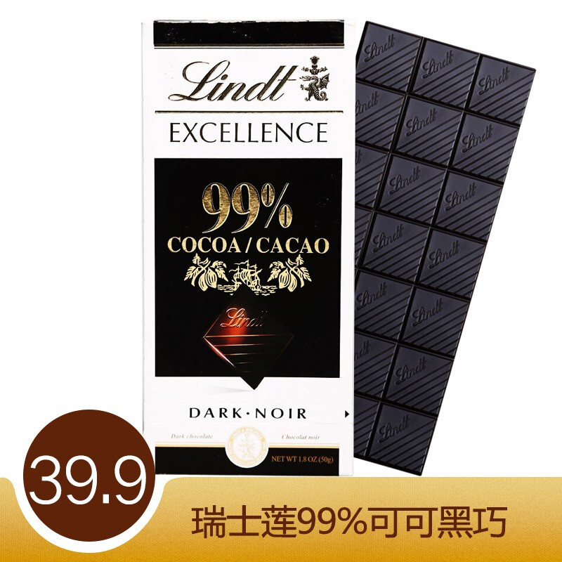 商品名称:集采 瑞士莲特醇装-99%可可黑巧克力50g 法国产