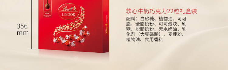商品名称:集采 瑞士莲软心牛奶巧克力 - 22粒装礼盒 瑞士产 264g