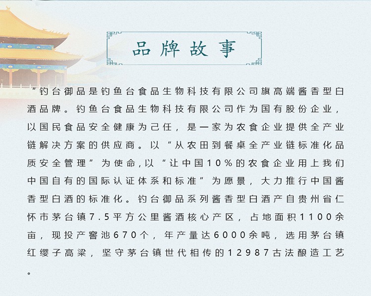 商品名称:钓台御品 上品53度酱香型白酒 500ml*6瓶/箱
