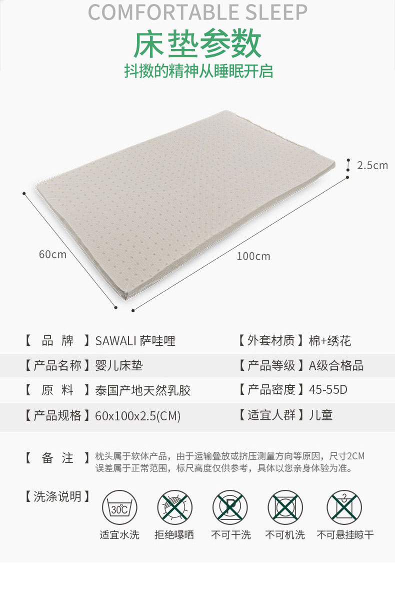 商品名称:SAWALI/萨哇哩婴儿床垫60*100*2.5(cm)/SW-3899