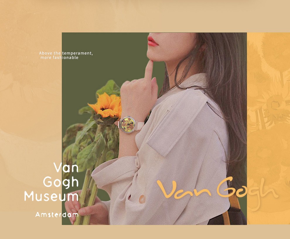 商品名称:梵高(VanGogh)瑞士手表女 3D牛皮表带小众个性网红瑞士原装轻奢腕表送女友 向日葵Lady13-G(新疆西藏不发)