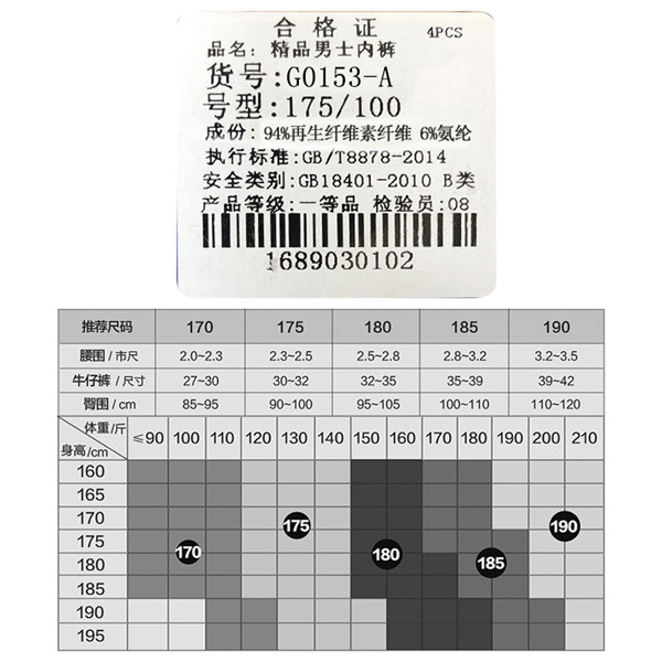 商品名称:恒源祥男士冰丝平角裤组合四条装 G0153-A/G0153-B(图片色)(170/175/180/185)下单备注尺码