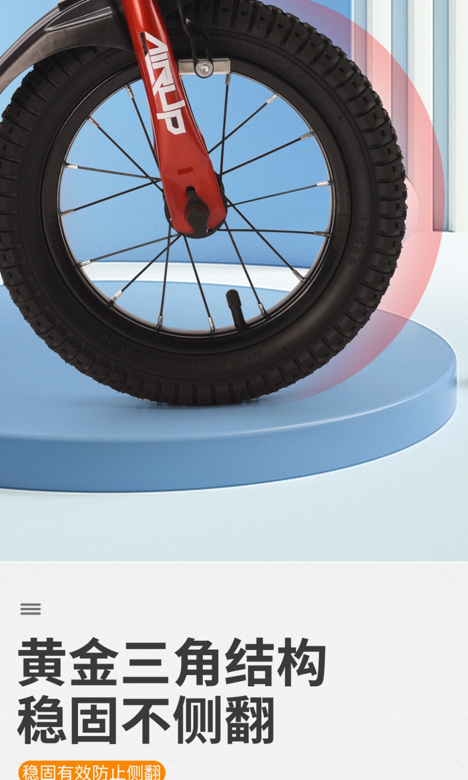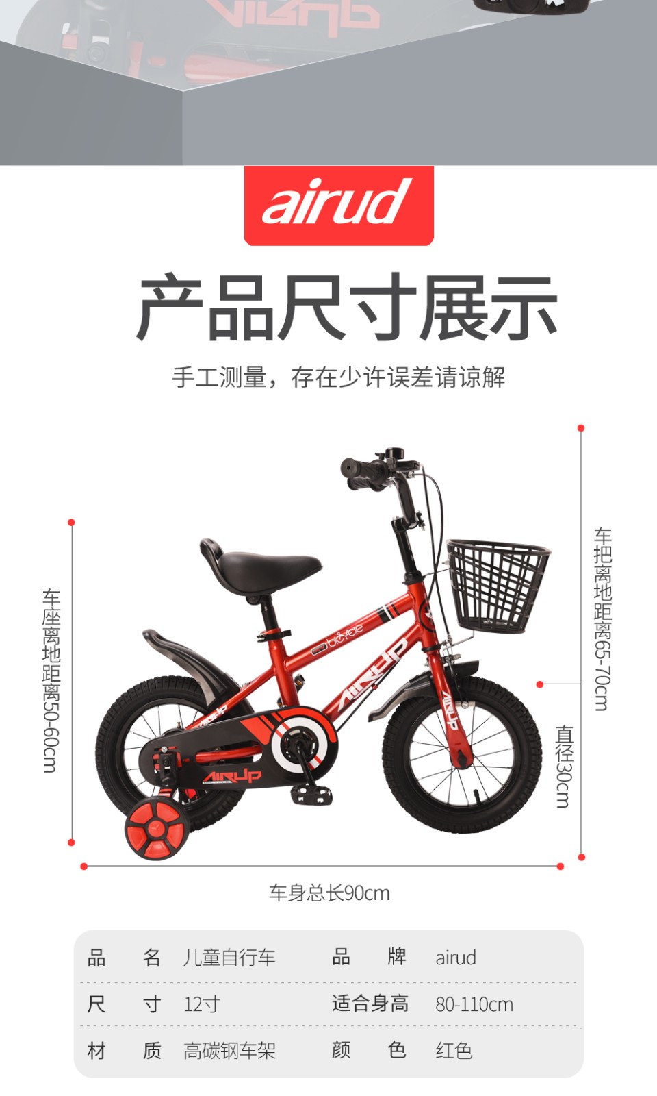 商品名称:airud 儿童12寸自行车 CT01-1602(适2-10岁)碳钢车架减震 中国红色