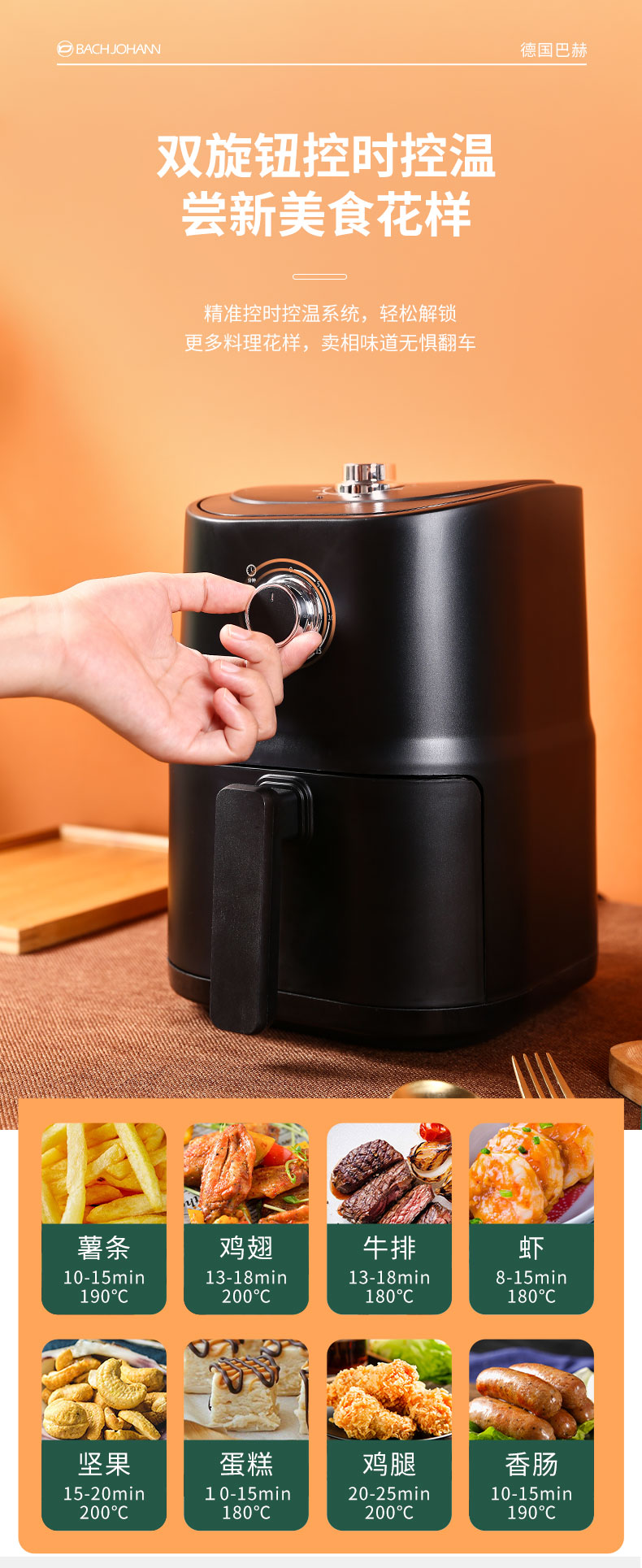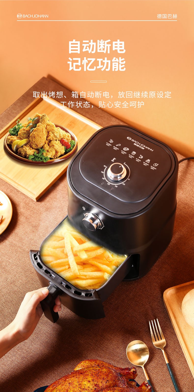 BACHJOHANN德国巴赫 Y48-G8010空气炸锅 全自动智能无油电炸锅4L 绿/黑可选下单备注颜色