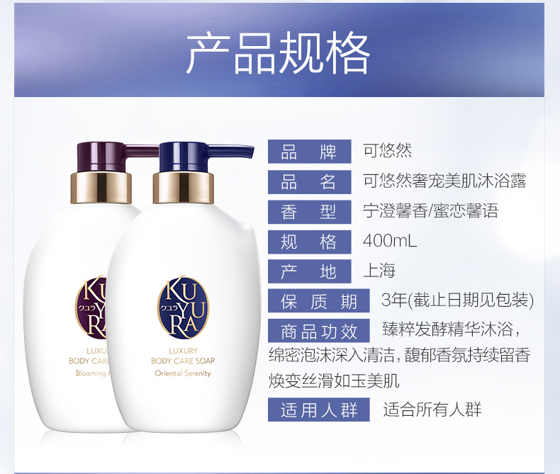 商品名称:资生堂可悠然奢宠美肌沐浴露(宁澄馨香)400ml 6926799624002 新疆 青海 西藏 不包邮