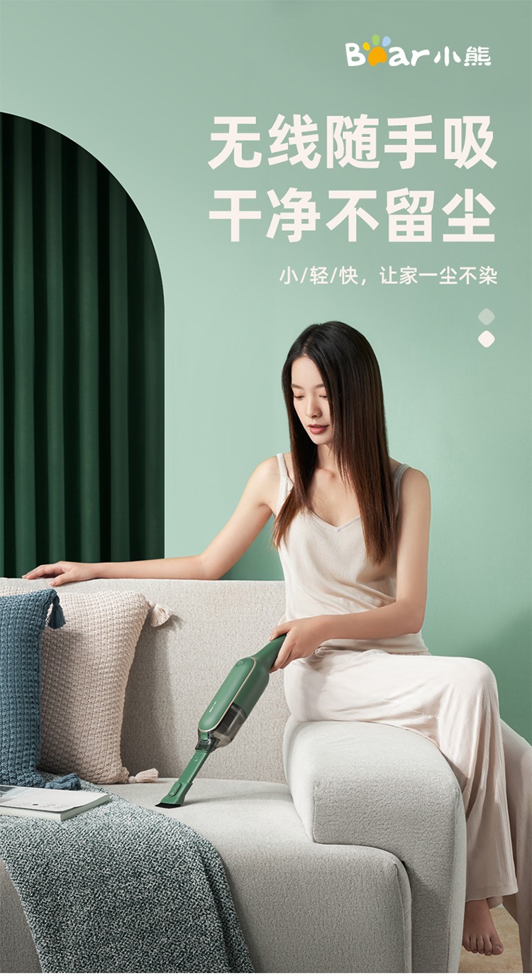 商品名称:小熊 吸尘器 XCQ-B01R1 家用车载手持无线式 绿色/白色