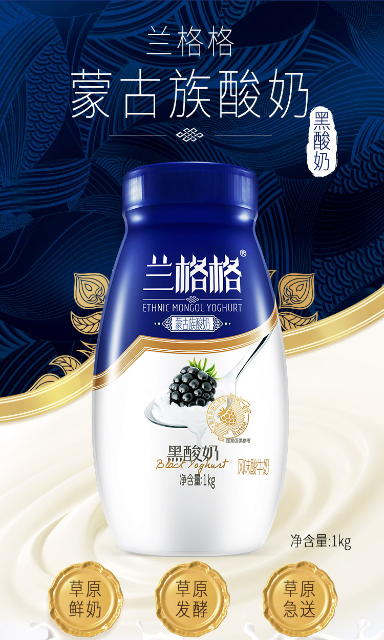商品名称:兰格格 黑酸奶1kg *2瓶