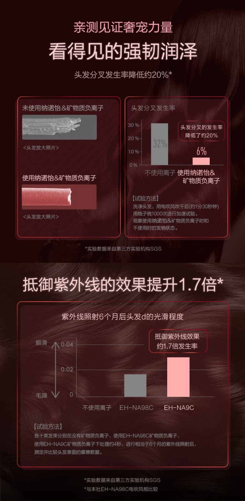 商品名称:松下(Panasonic)电吹风机 家用 大功率 EH-NA9C 红色 纳诺怡系列电吹风
