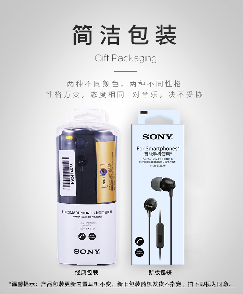 商品名称:索尼(SONY) MDR-EX15AP 黑色白色任选